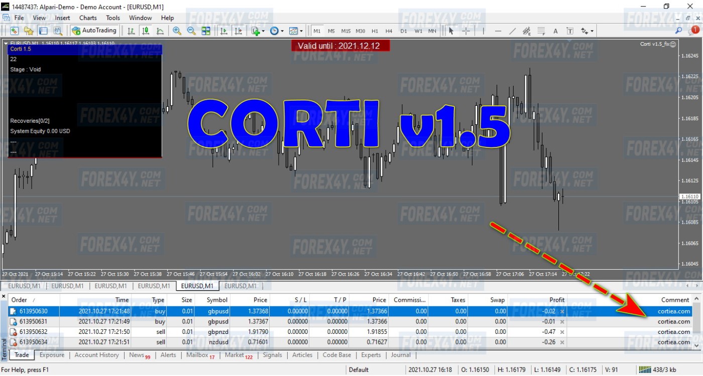 Corti is a Metatrader 4 Expert Advisor which trades Forex Triangulares or Correlated Pairs with a Recovery Option when the market is volatile.