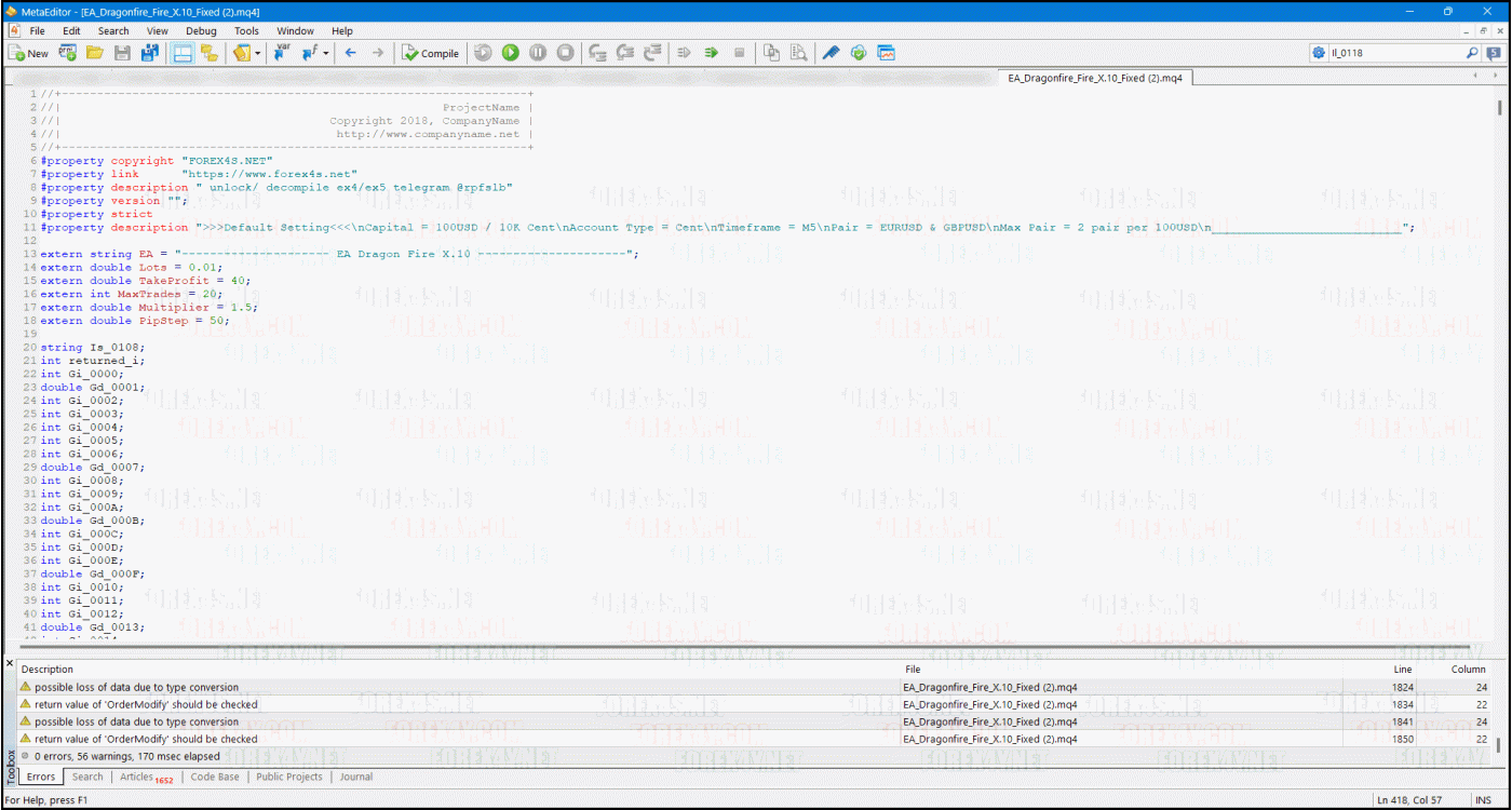 EA DRAGON FIRE X.10 (Source Code MQ4)