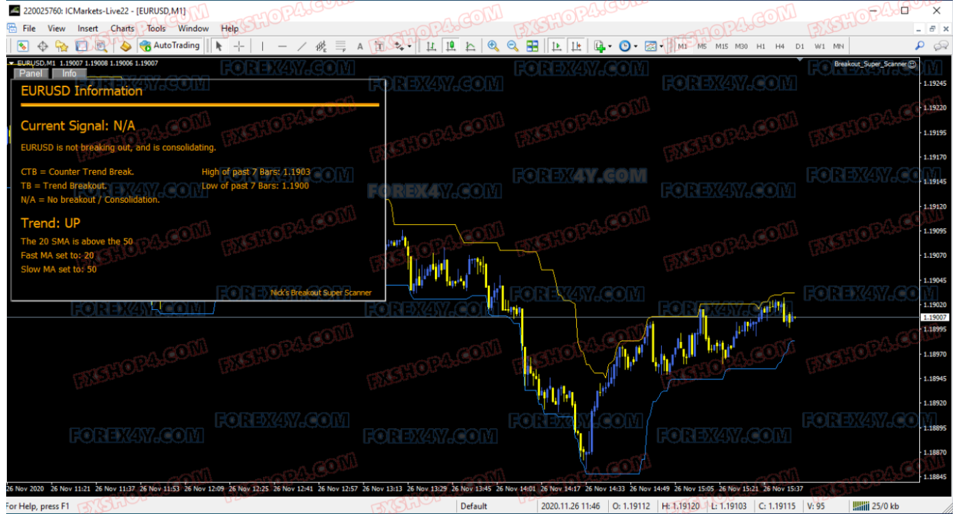 The breakout super scanner is a tool built specifically for MT4, designed to find potential breakout trading opportunities. The tool specializes in identifying both trend breakouts and counter trend trading breakouts.