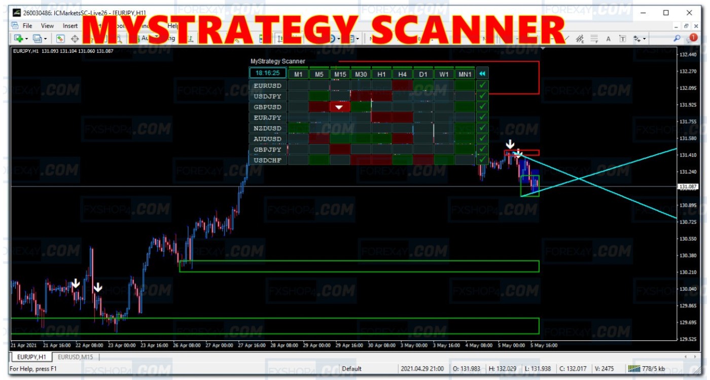 My Strategy Scanner (The only indicator you need for forex trading). My Strategy Scanner allows you to create your own strategy and scan all the timeframes, and pairs at the same time. It comes with support and resistance zones, trend lines, and sideways detection. (MT5 version does not include Sideways Detection).